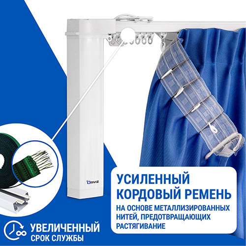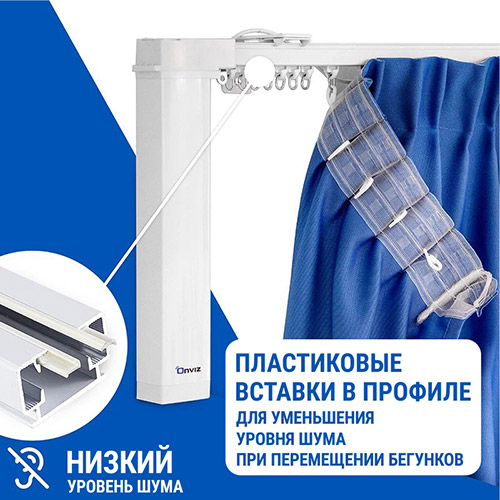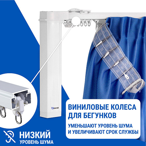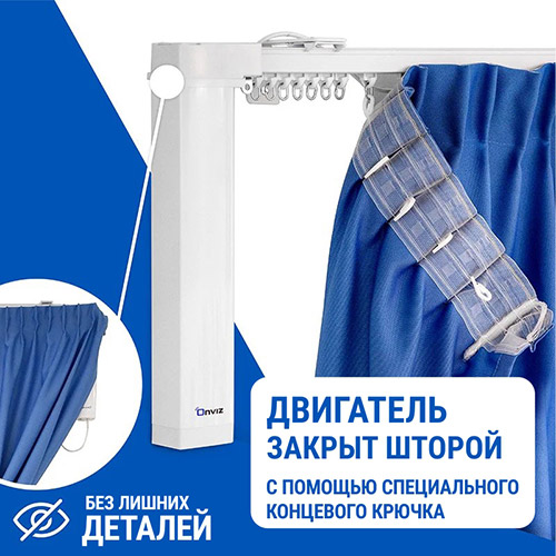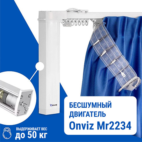 С редуктором на основе планетарного механизма, позволяет передвигать шторы весом до 50 кг
